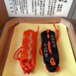 海女さんの磯着に見たてた、麻のお守り袋には、海女さんたちが海に入る際に身につけるものに記し